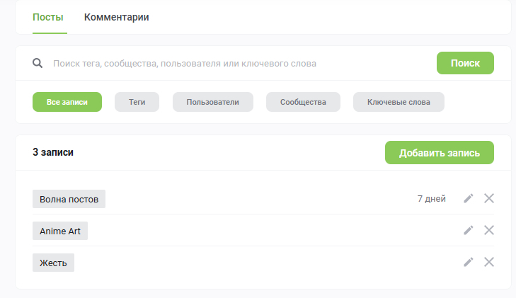 Разговор идет только о постах этой волны, их статистика.