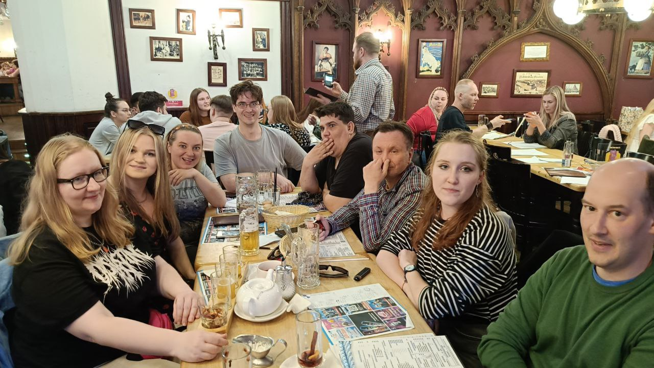Беседы у костра самые разнообразные, периодически собираемся поиграть в настолки и на разные интересные мероприятия - собраться в кальянке или на даче у кого-нибудь, сходить в караоке или на картинг, снять беседку, выпить кофе тоскливым вечером, просто прогуляться.