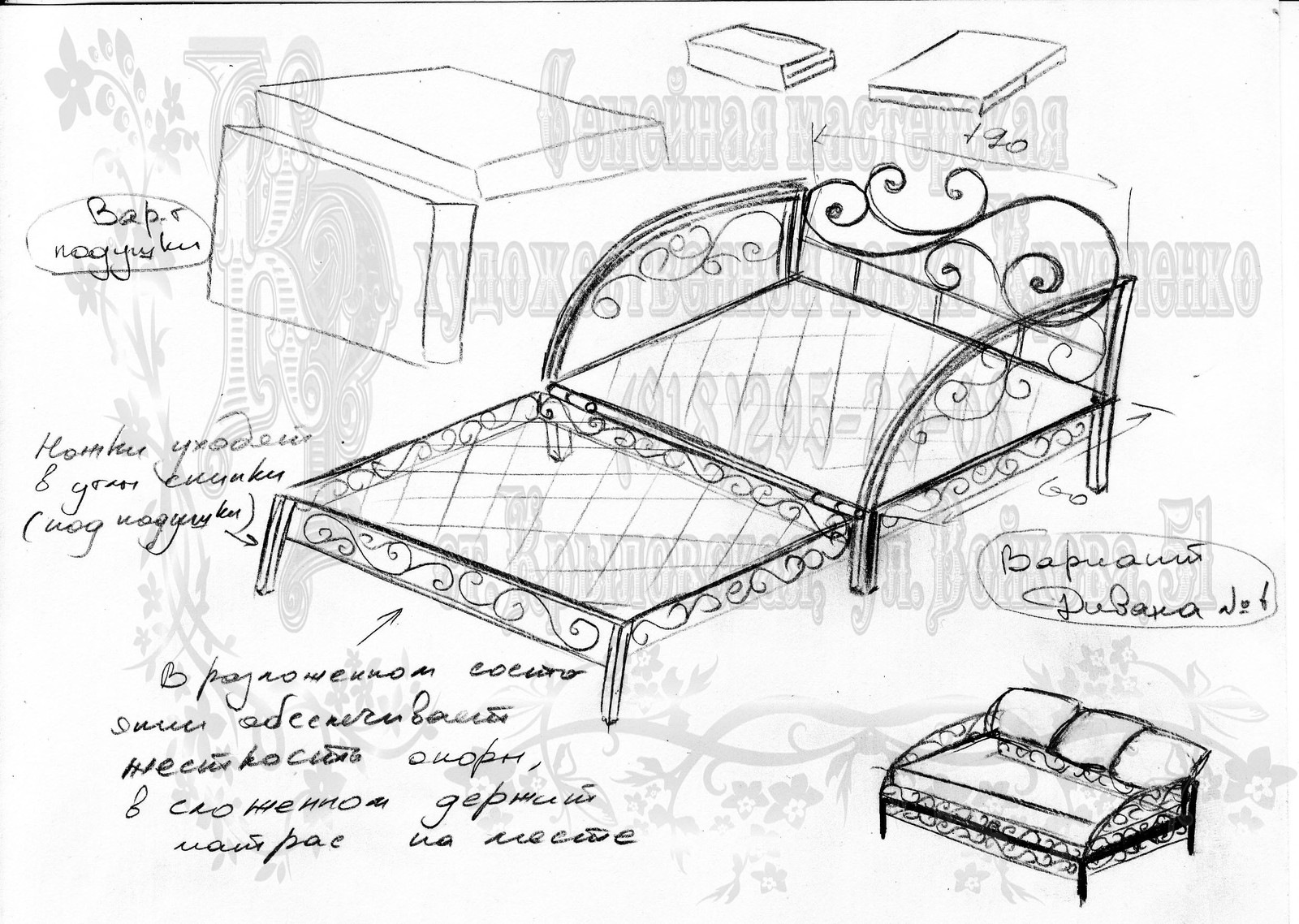 Наброски под кованый диванчик-раскладушку.