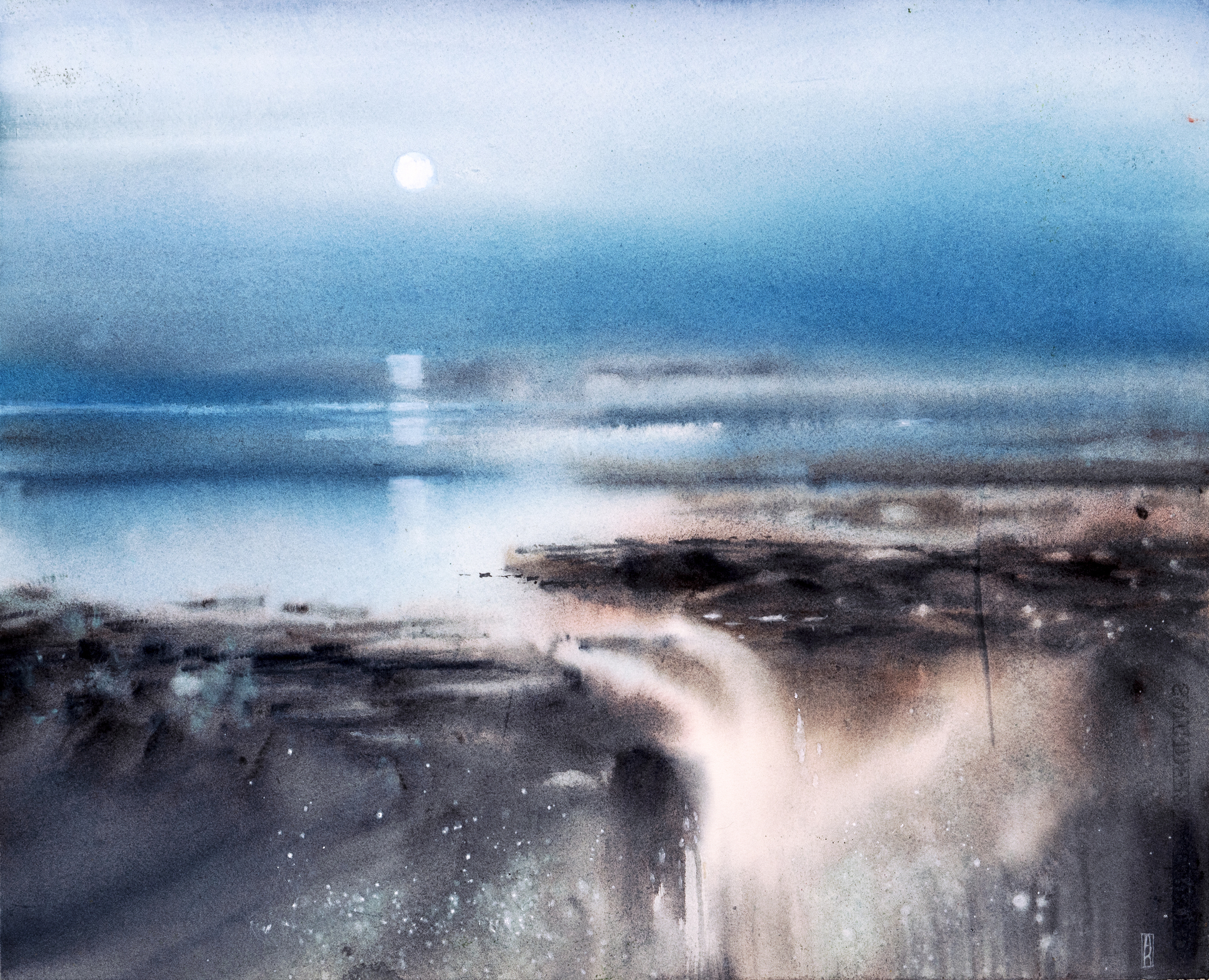 Делюсь новой акварельной работой, написанной в духе пейзажей британской художницы Наоми Тайдмен.