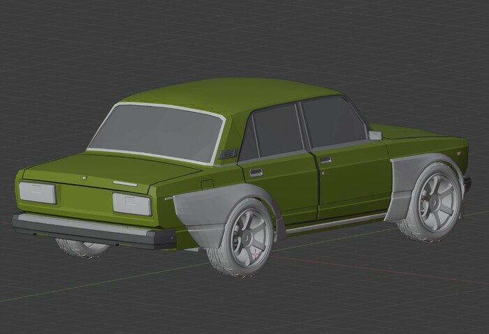 У меня есть кузов масштабной модели 2105, придумываю на него обвес. Для начала нашёл 3д модель семёрки, на ней тренируюсь. Первые наброски вот такие :