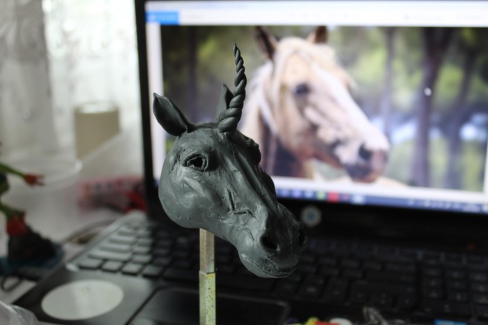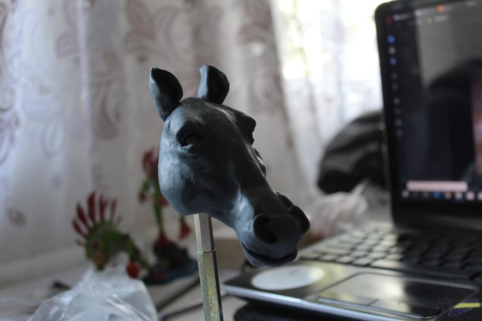 День первый, знакомство с лепкой. Первый раз беру в руки пластилин. Должна была получиться голова лошади, но вышел ослик)