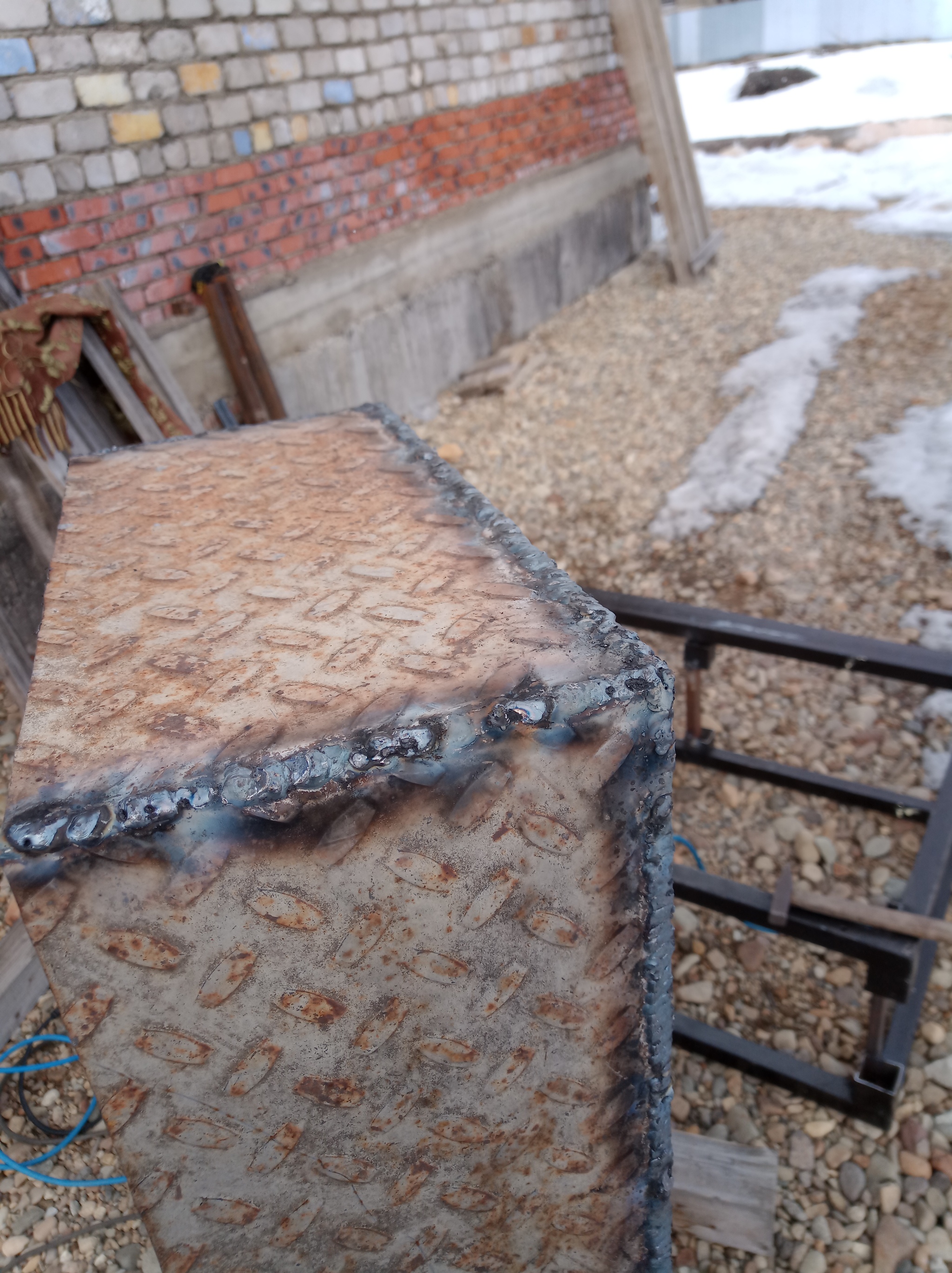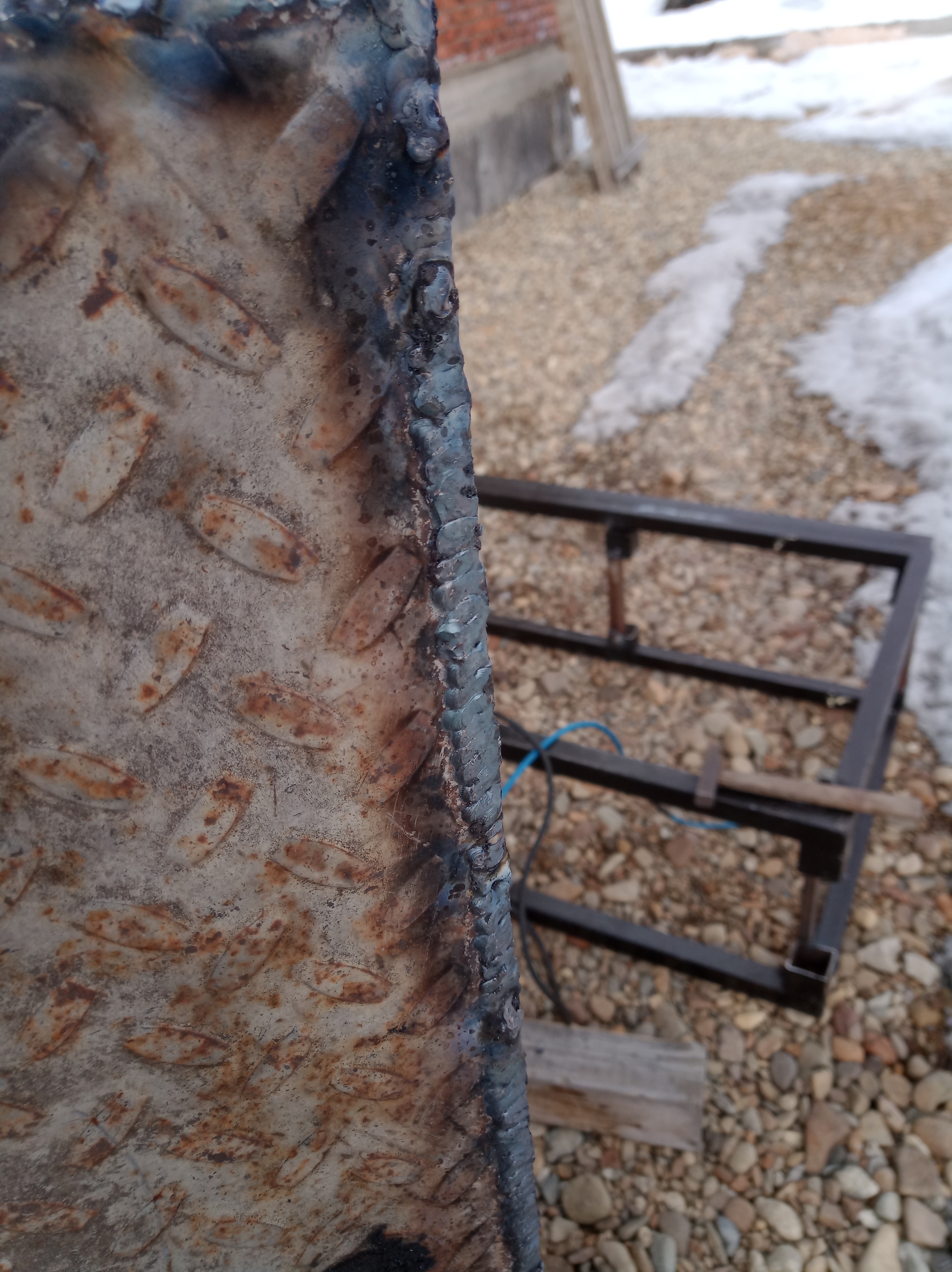 Пока снег ещё не весь растаял и бетон лить рановато для будущей веранды, решил что надо сварить мангал, части которого были нарезаны в аккурат перед первым снегопадом в ноябре прошлого года. Пришлось всё свернуть и оставить до потепления.