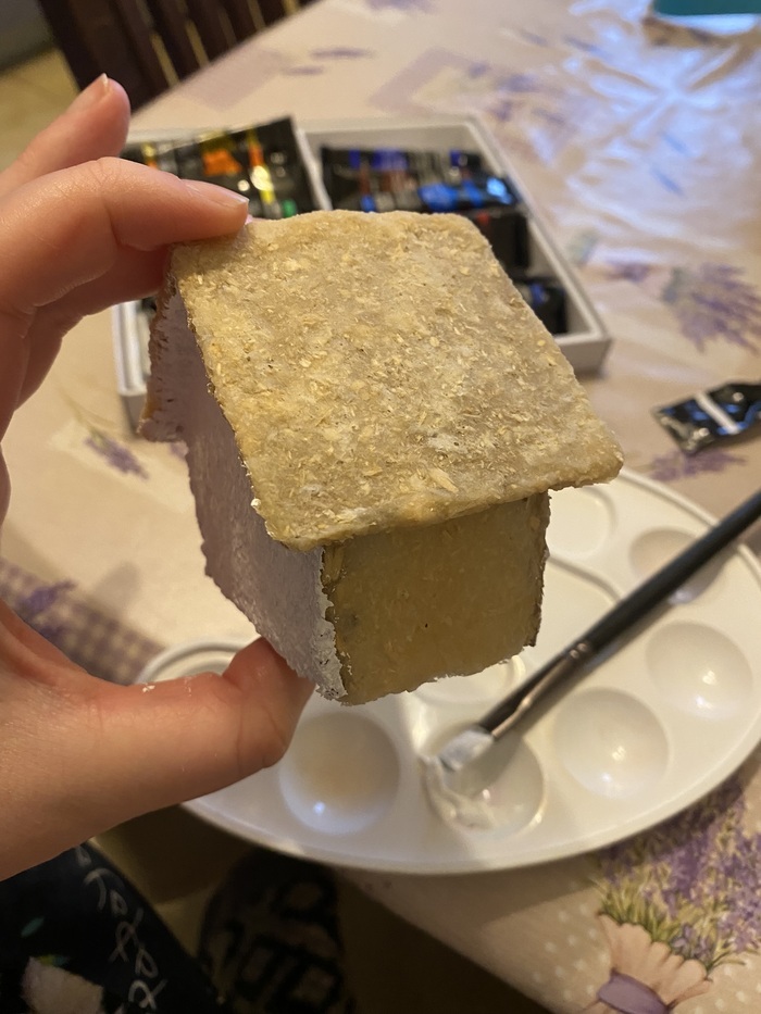 Несколько дней спустя вот что получилось у меня) первый блин комом, буквально на коленке, из детской канцелярии потаскала кисти и краски, кое как расписала, и…. Это была любовь с первого раза! Сам процесс! Домик то, я понимала, немного не такой, как должен был быть… сильно не такой)! Но с того октября ‘23 года меня было не остановить)!