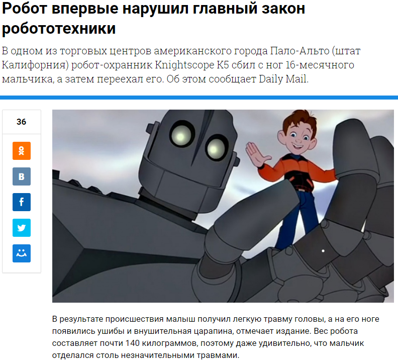 G0nZaleZ Началось... 9 лет назад Отсюда: https://news.mail.ru/society/26441335/ Восстание машин Робот Техника Айзек Азимов США Мы все умрем Три закона робототехники