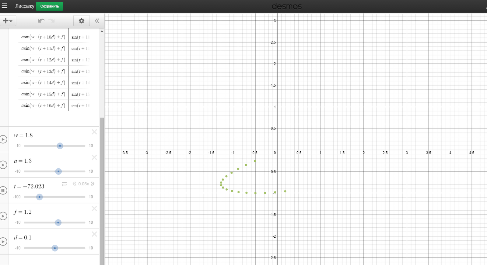 DimikFilik Надеюсь здесь есть люди, которым нравятся графики и математика) 9 лет назад https://www.desmos.com/calculator/eqeu1btirz [моё] Фигура Лиссажу Математика Красота Залипалка