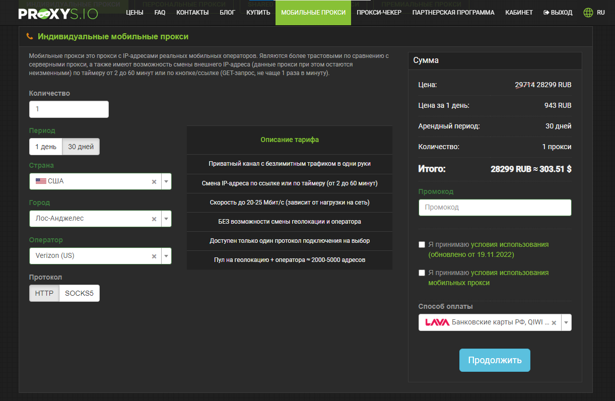 индивидуальные (в т.ч. скоростные, со сменой геолокации) и Shared мобильные прокси.