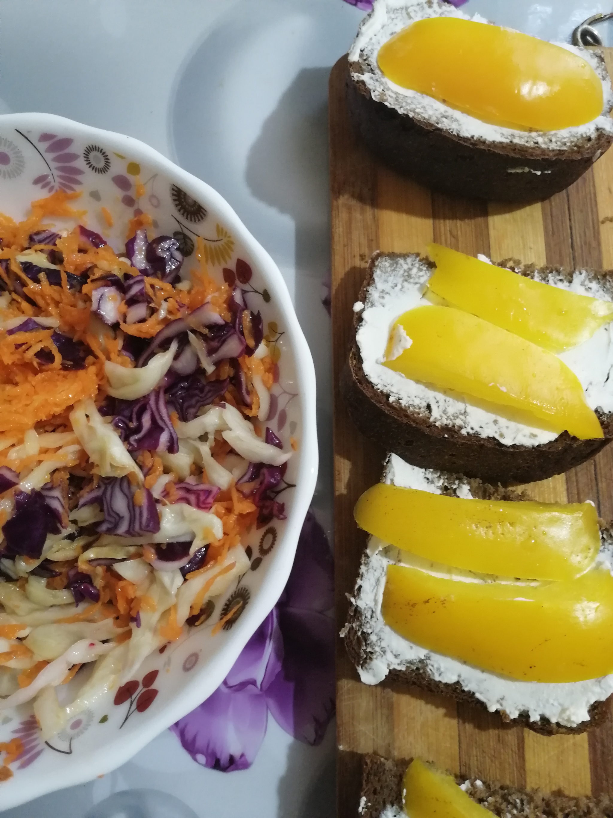 Никогда не думала, что буду так радоваться салату из двух видов капусты и морковки, а также есть бутеры с сыром и болгарским перчиком.