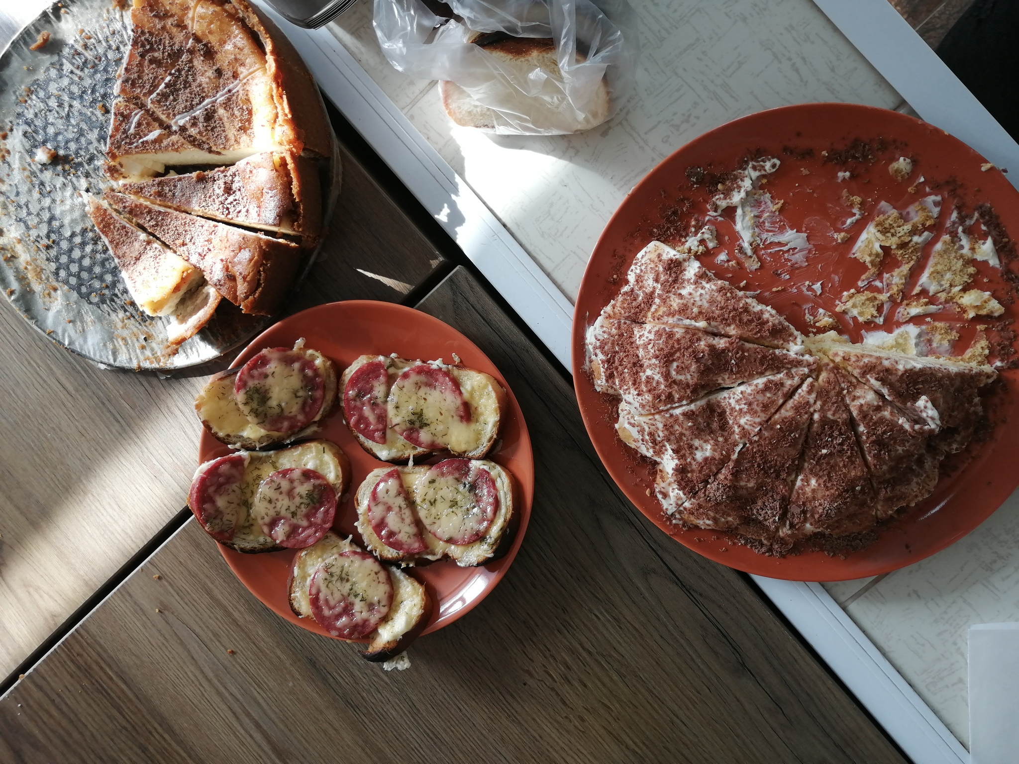Радовали себя как могли)) К сожалению, далеко не каждый день (иногда и коллеги нас кормили, иногда мы их), но как только, так сразу восстанавливали дофаминовый голод).
