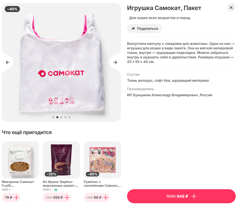 2 ILYA.SAKHA 12 часов назад Надоело, что кошку интересуют не игрушки, а пакеты из под них? Тогда есть решение для Вас! Игрушка в виде пакета! Со скидкой получается почти даром =) Кот Игрушки Пакет Бред Самокат (сервис доставки) Ещё 0