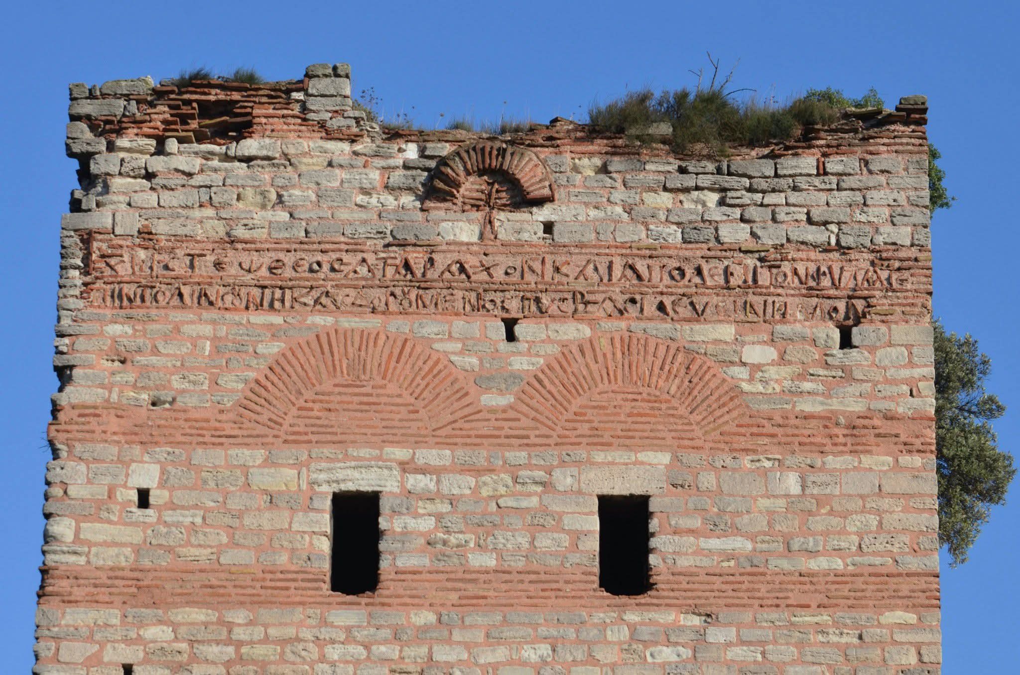 (По-гречески: «Χριστὲ ὦ Θεός, ἀτάραχον καὶ ἀπολέμιτον φύλα[ττε] τὴν πόλιν σου, νήκας δορούμενος τῦς βασιλεῦσιν ἡμõν».)