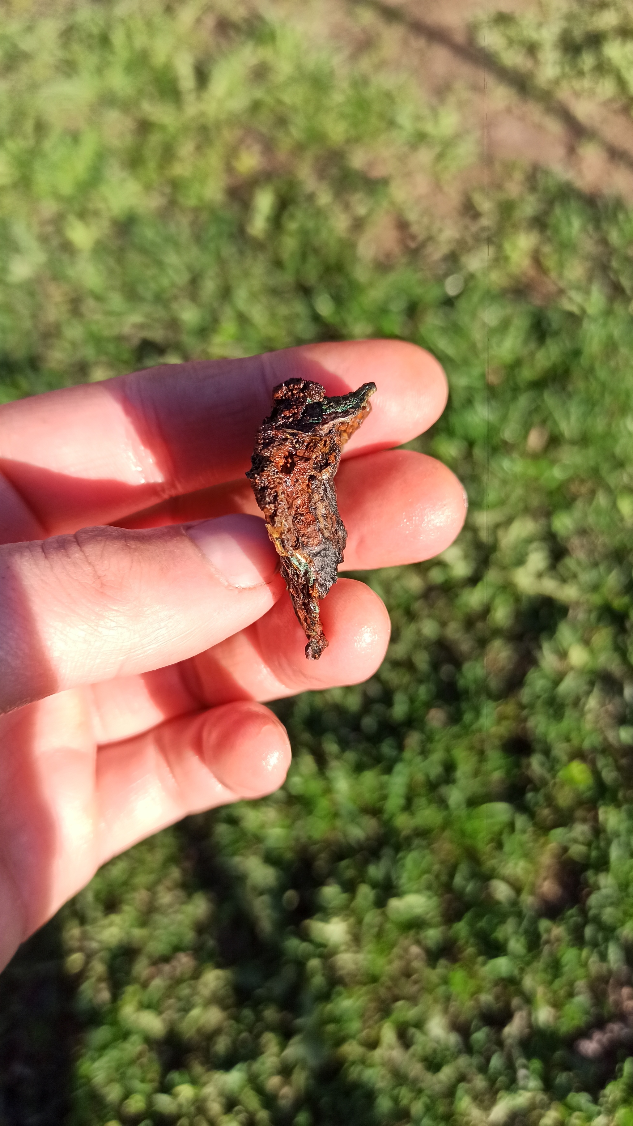 Можно предположить, что этот осколок был одним из многих (найденные в области живота и таза), в следствии попадания которых, погиб боец.