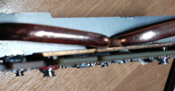 и "столбики" креплений стачиваем напильником так, чтобы выступали на 2-2,2 мм. Ибо если не сточить - то радиатор без крышки чипа не будет касаться того самого сипа, и все погорит к х...ям.