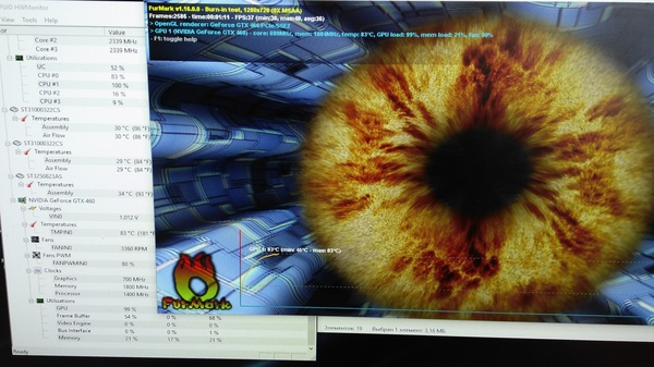 при открытом ящике - 31 градус, при закрытом - 37, стресс - 83, далее стабилизировалась на 87.