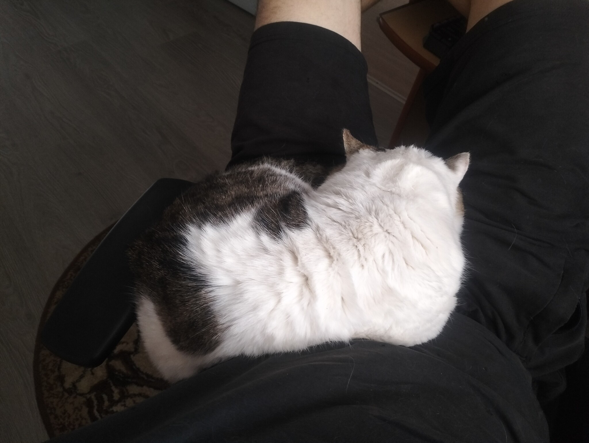 Мой на хозяевах любит спать,( 6 кг счастья сопящего) в данный момент буквально