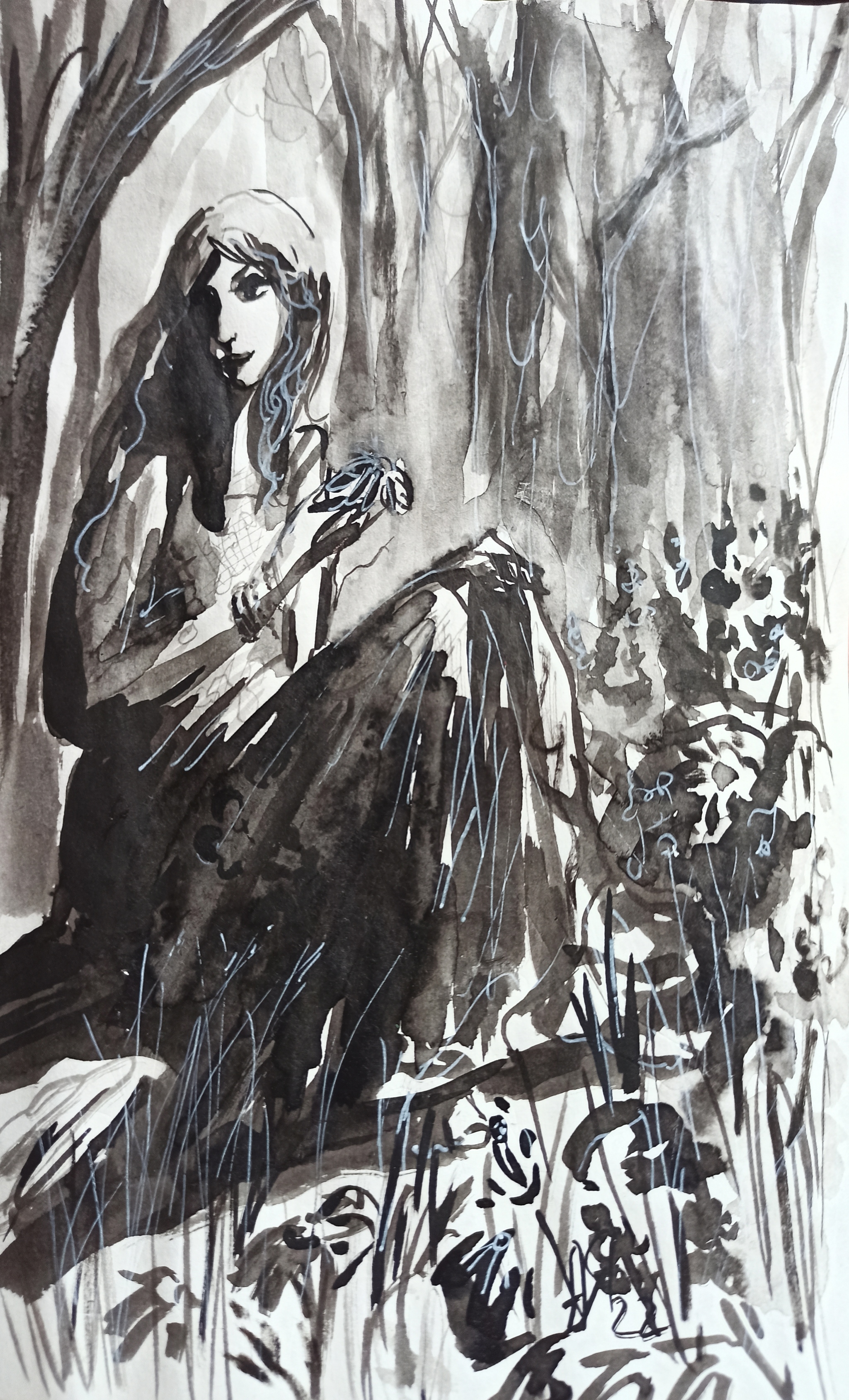 Наивное. Нашелся тот цветочек (21*13, тушь, роллер)