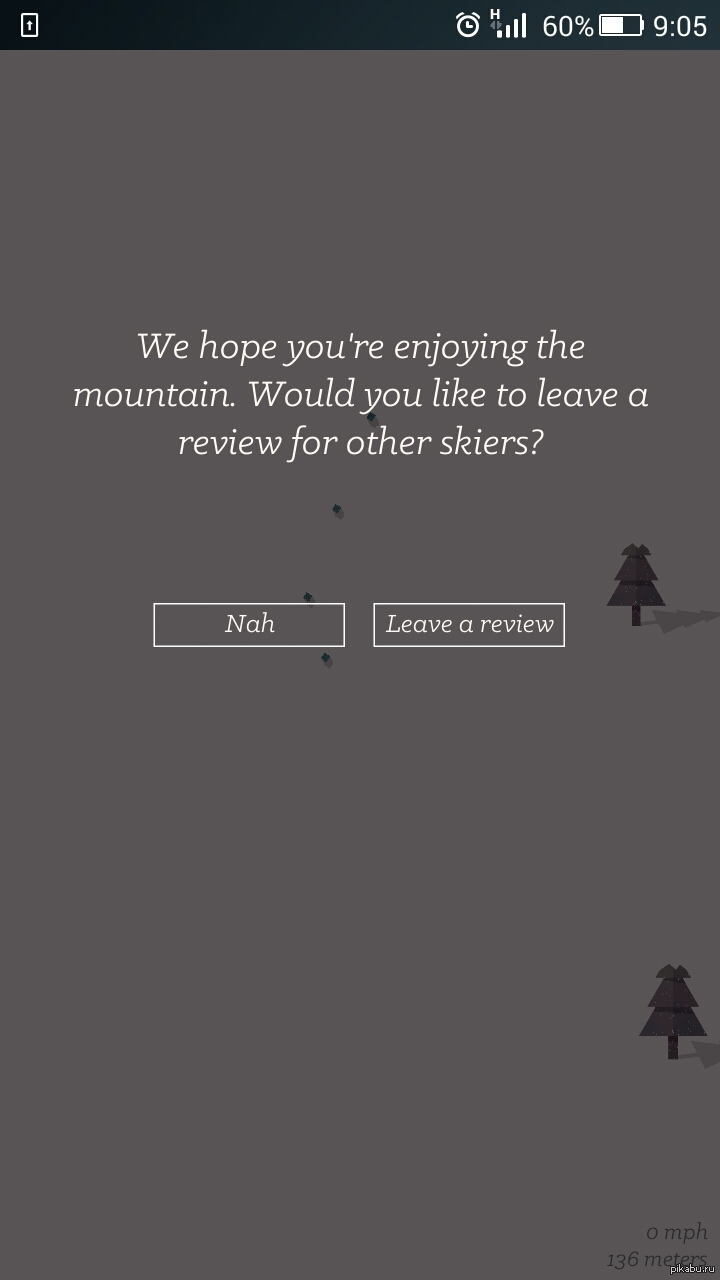 «Мы надеемся вам понравился спуск с горы. Не хотите ли оставить отзыв для других лыжников?»