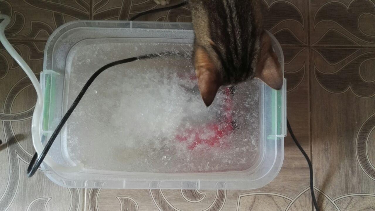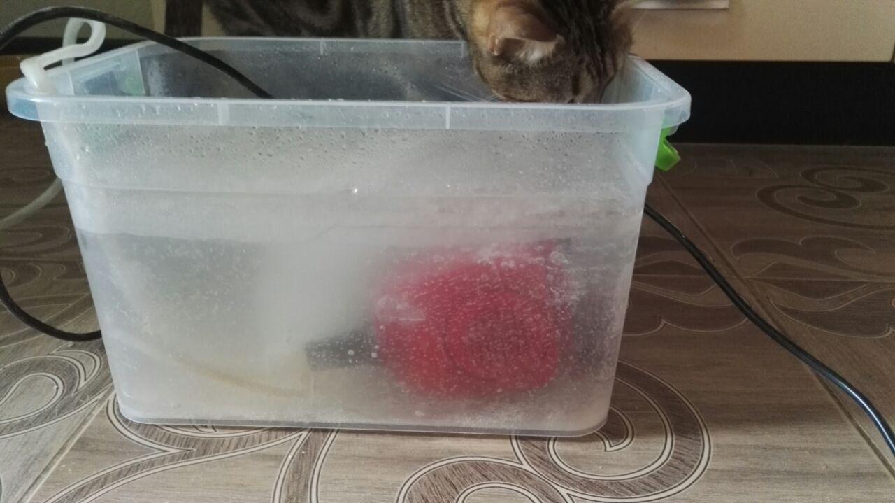Со шпинделем в кладовке её не оказалось, зато нашли заботливо замёрзлой в воде в углу лоджии. Вот сидим в ванной, пытаемся её разморозить...