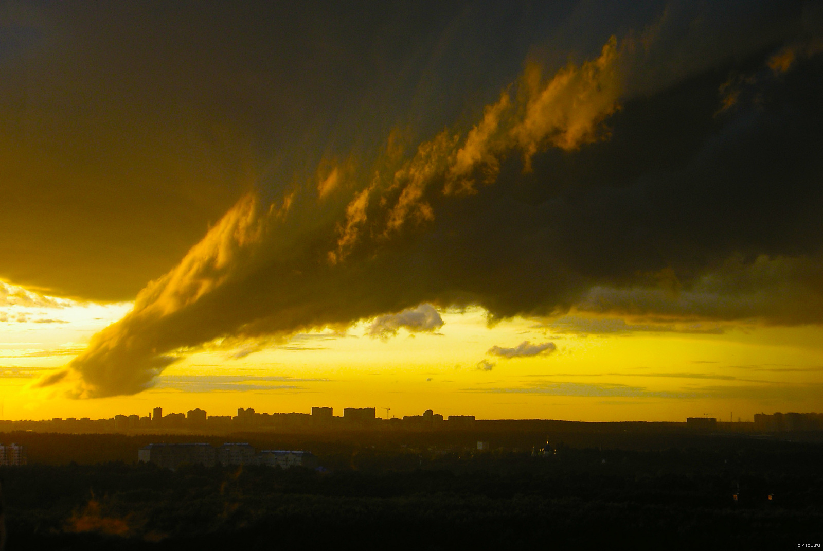 19 Ytmwasd Наконец довелось увидеть необычное облако 10 лет назад В Москве нынче дождь, льет из вот этого :) Не думаю что кому-то интересно на какое старье это снято [моё] Небо Погода Закат