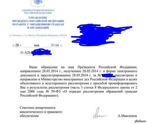 forgotten13 11 лет назад Наконец то хоть что то просил принять меры в урегулировании ситуации на Украине. Посылал 2 запроса. первый ответ указал переслать на электронку, этот в почтовый ящик, бумагой Украина Россия Владимир Путин