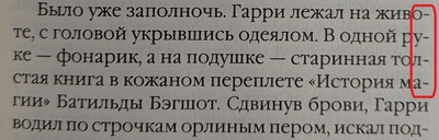 Текст. Печать просто на высоте. Буквы без рваных краев, очень яркие и четкие, и пока я не нашел ни одного места, где шрифт становился бы блёклым. Я специально, с небольшим усилием, протер текст пальцем, и он не размазался (что иногда бывает даже у новых книг от Махаона). Но самое удивительное в этих книгах — то, как досконально повторен оригинал. Я не нашел никаких отличий, притом что верстка для меня всегда была камнем преткновения. Очень многие репринты грешат опечатками и слитым текстом, а для меня это критичнее, чем, например, слабый переплет. Судя по всему, оригинальные книги были отсканированы в высоком разрешении, а не воссозданы в текстовом формате.