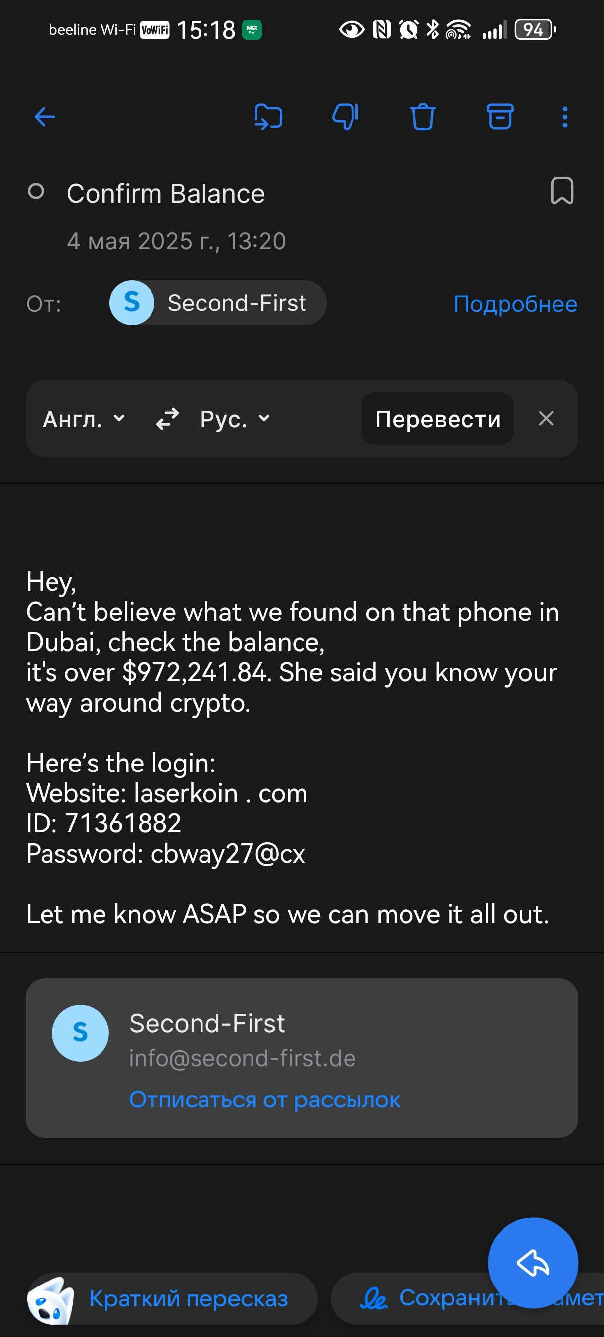 Erdrom Налетай, халява! 9 месяцев назад [моё] Халява Электронная почта Криптовалюта Английский язык Мошенничество Фейк Длиннопост 1 Ещё 0