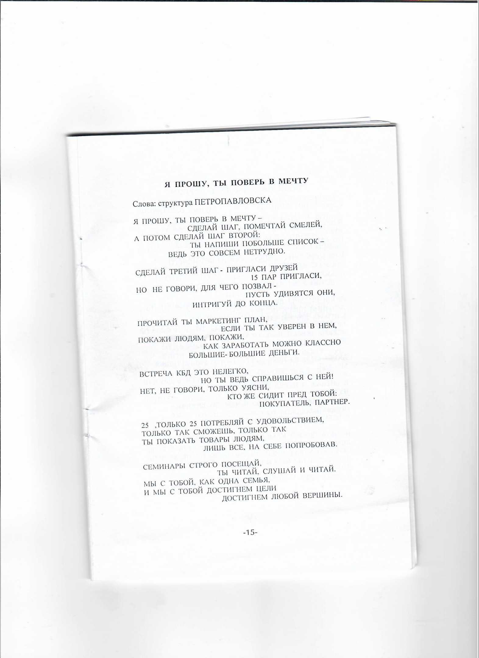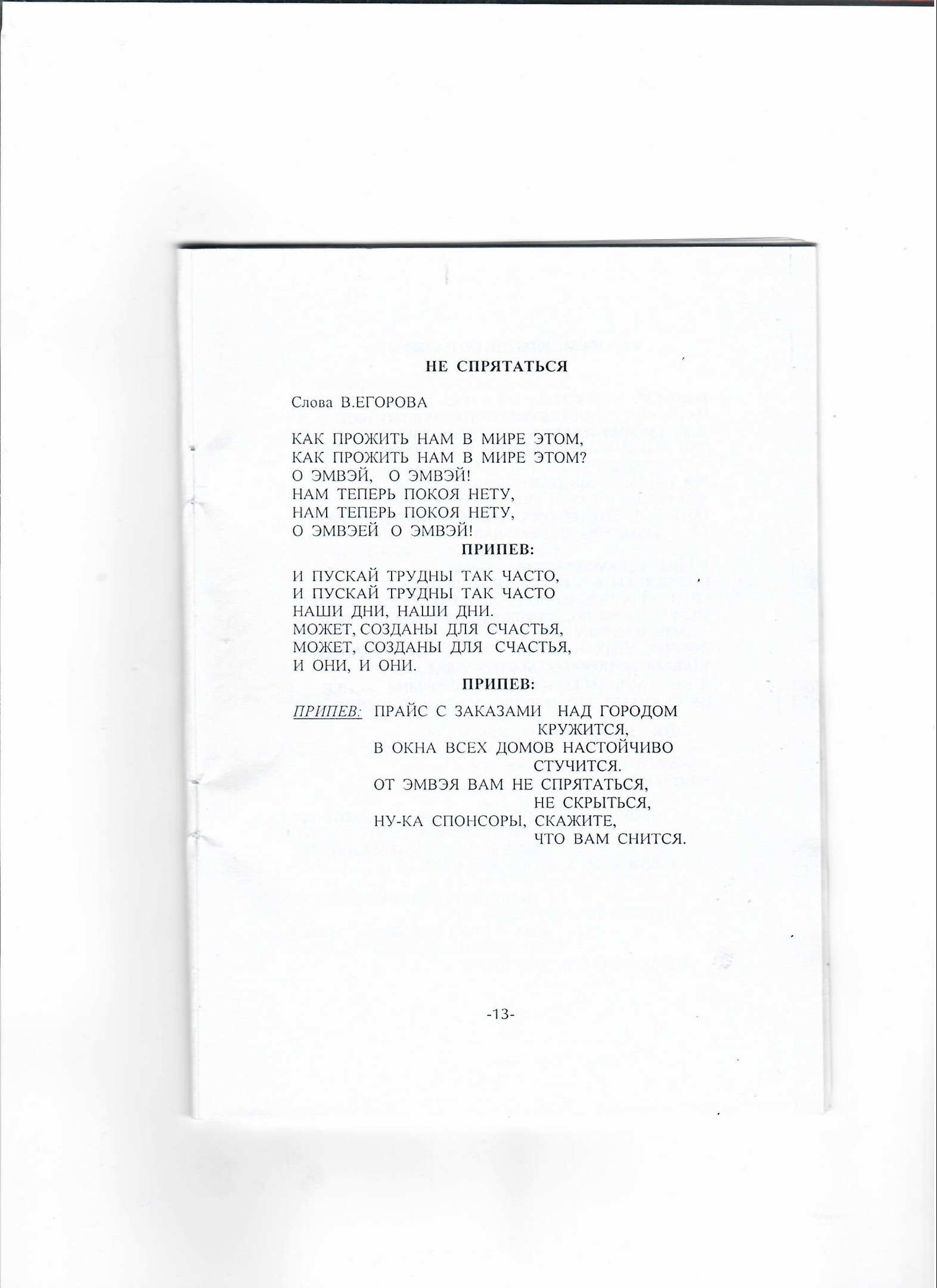 Делая генеральную уборку, нашла любопытную книжку, доставшуюся от прежних хозяев квартиры. Внутри обнаружила просто кладезь зомбирующих эмвэем песен. Смотрите сами. Талант некоего Егорова лезет из каждой строки. Прямо захотелось вступить в эту секту.