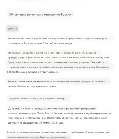 Мы хотели бы внести коррективы в нашу политику прекращения предоставления услуг клиентам в России, о чем было объявлено вчера.