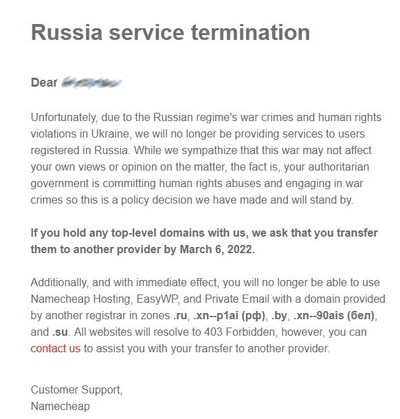 update 2: техническая поддержка namecheap завалена запросами и просто не отвечает. Переносы доменов массово сбоят - коды переноса не приходят или приходя неправильные