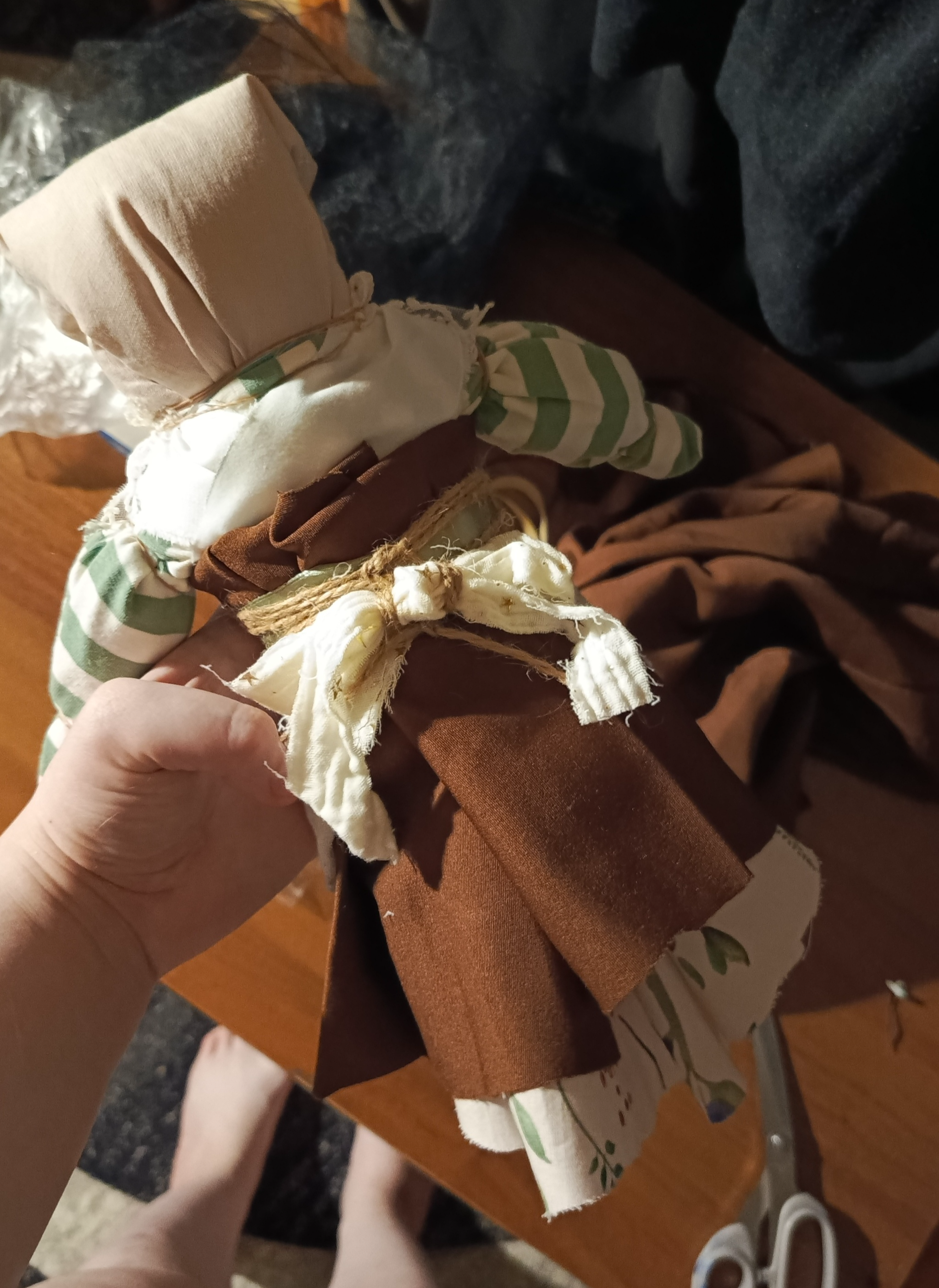 Вчера прилетел срочный заказ на куклу-мотанку. Подарок для ребёнка на Новый год и тыры-пыры.