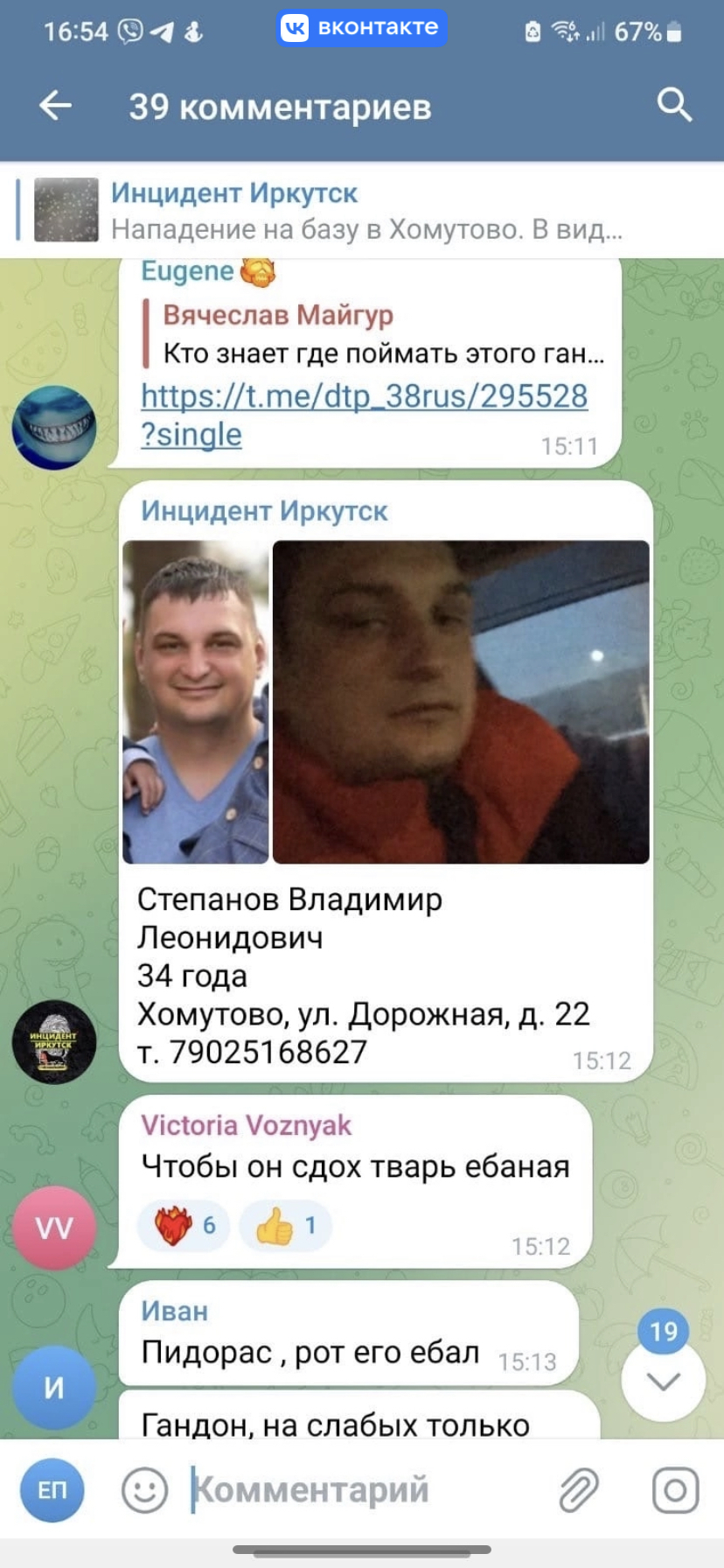 5. Самый цимес на видео не попал. Помимо гражданина из белого Мерседеса, на базу чуть позже приехал десяток граждан без национальности, которые избили до больнички хозяина базы. Избиение смог прекратить с помощью травмата брат хозяина, который и доставил пострадавшего на больничку. Такой себе конфликт между родственниками. Материалы по избиению гражданами без национальности направлены в СК в части решения вопроса о наличии состава покушения на убийство. Хуячили трубами по голове.