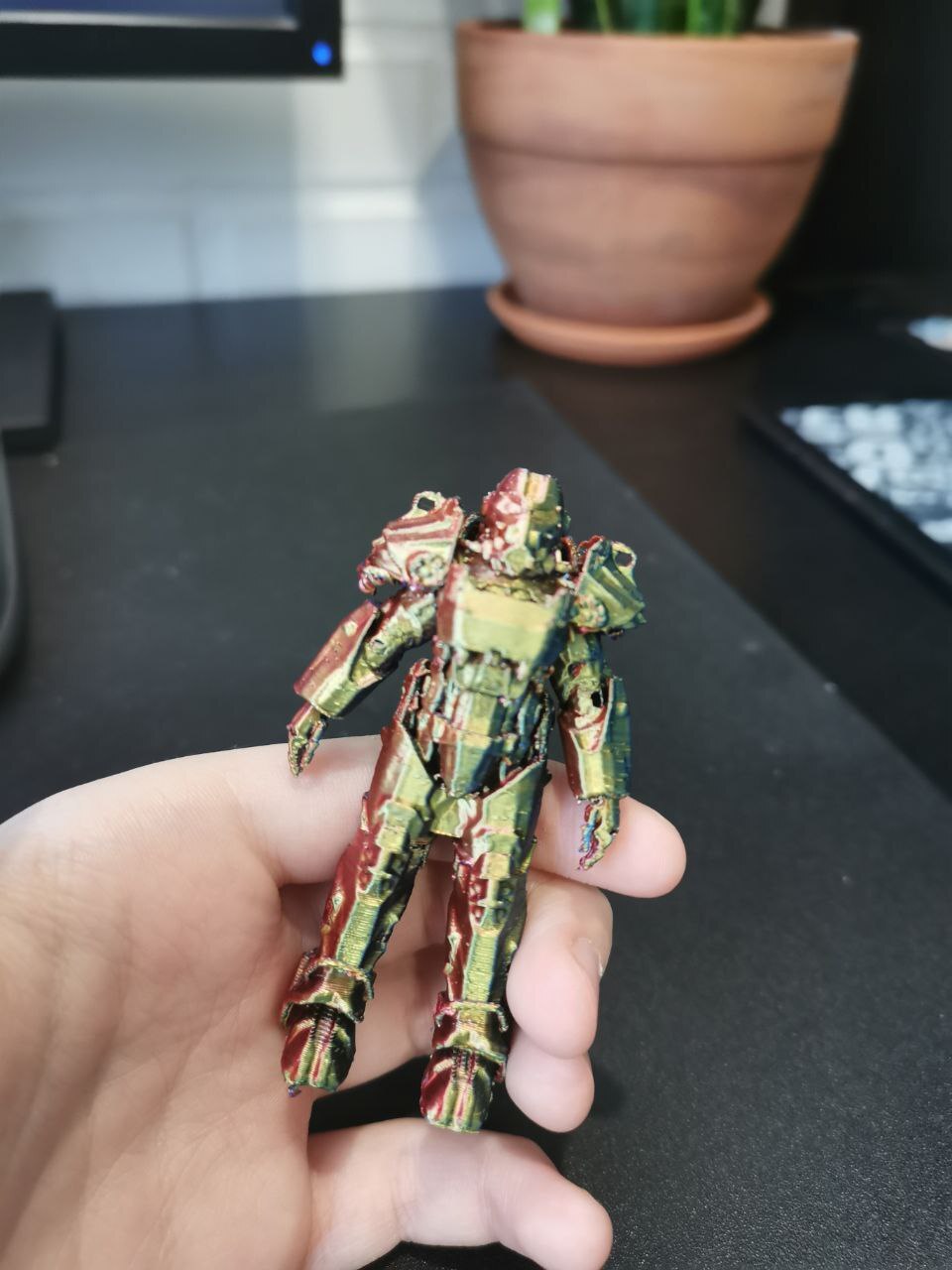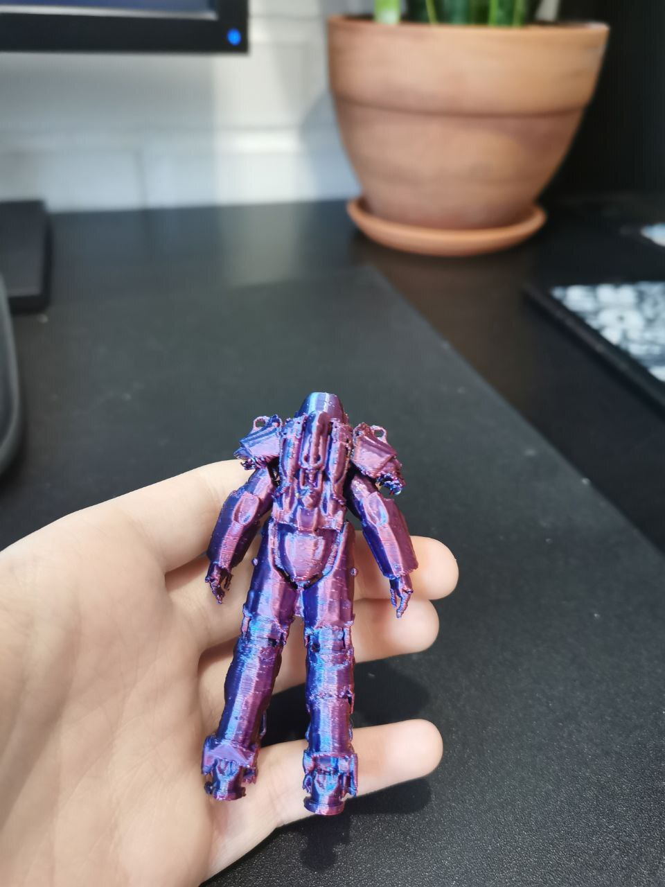 8 Kiper.Andrey Напечатал силовую броню из Fallout и радуется 10 месяцев назад Вот такую броню распечатал я на 3D принтере. Теперь будет украшать мой стол))). И да, я большой поклонник Fallout 4. Сейчас прохожу его (на PS). Вид спереди Вид сбоку Вид сзади Печатал ее из трехцветного пластика, взяв модель с какого-то сайта. 3D печать 3D принтер Fallout Fallout 4 Длиннопост 1 Ещё 0