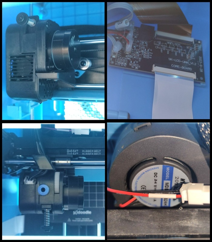 Передвигаются оси принтера по тоненьким валам с подшипниками. Ось z по классике реализована через трапецеидальный винт. Что удивительно, на осях x/y есть натяжители ремней. Максимальная область печати у данного принтера 100х100х90мм. За обдув отвечает улитка, достаточно мощная и в меру громкая в закрытом корпусе. Хотенд ни на что не похожий. Где их брать пока остается неизвестно. Думаю появятся со временем. Менять их в целом не будет проблемой. Открутить вентилятор обдува радиатора, за ним 2 установочных винста в самом радиаторе. Открутить, вытащить старый, вставить новый, переподключить провова и собрать обратно. Единственная беда во всем этой - очень мал корпус и что либо делать внутри него очень неудобно.