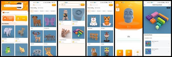 Мобильное приложение сделано таким образом, что пользолватель просто выбирает модель и одной кнопкой отправляет на печать на свое устройство по wifi. Удобства, да и только.