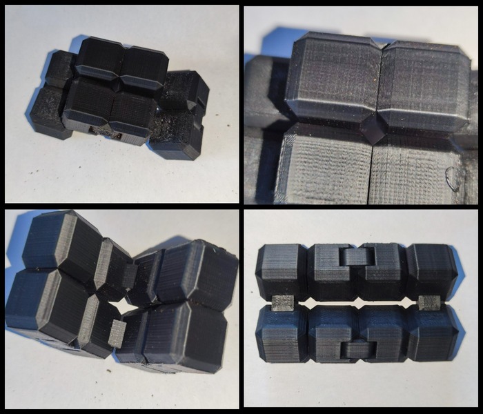 Кубики же я напечатал с профиля куры, на общей скорости 200мм/с. Величина отката в 0,8мм не создала между кубами никаких нитей, так что подойдет.