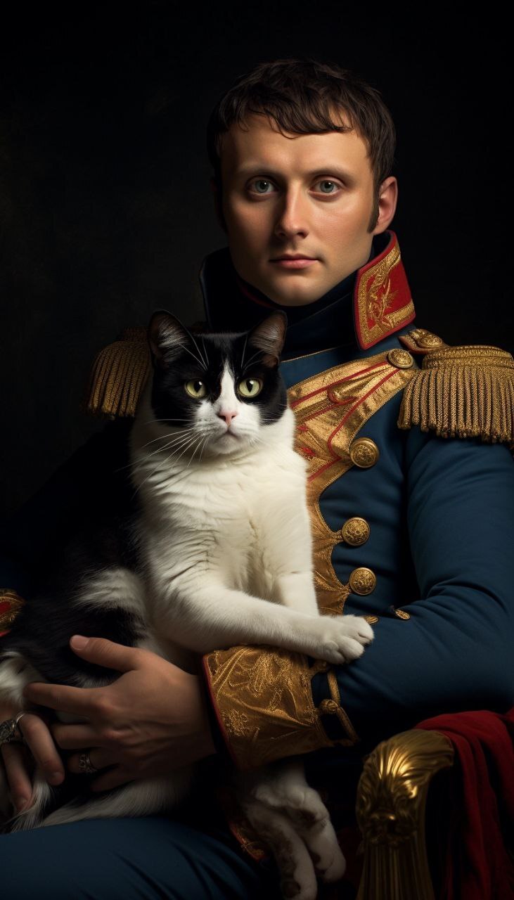 12 luckymanbest Midjourney Наполеон с котиком 2 года назад Источник Киберпалитра [моё] Арты нейросетей Digital Midjourney Картинки Арт Наполеон Ещё 0