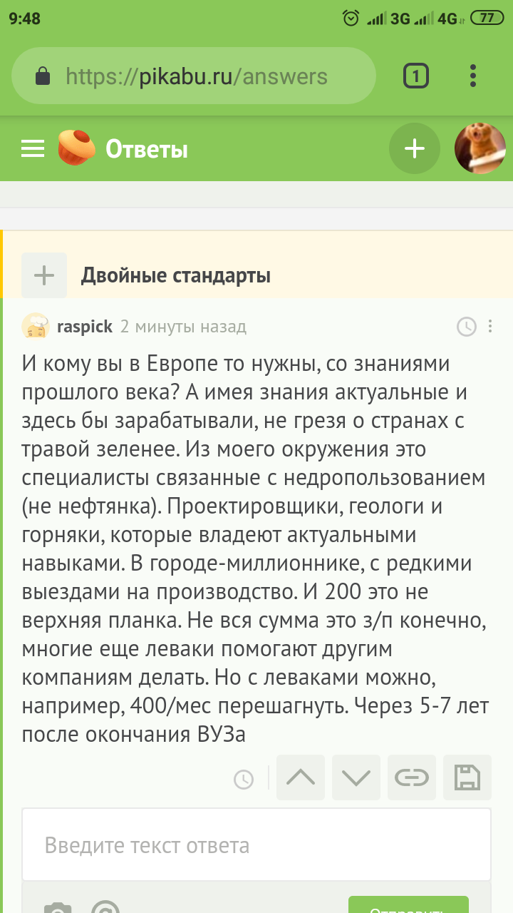Вот этот тоже видит развитие. Надо только стать. ТЕм кто работает с недрами,и рекой деньги польются .А вы все нищеьроды с неактуальными знаниями ))) интересно мужик который выплавляет сталь ,стоя возле доменной печи имеет 200 тыс рублей в месяц ?