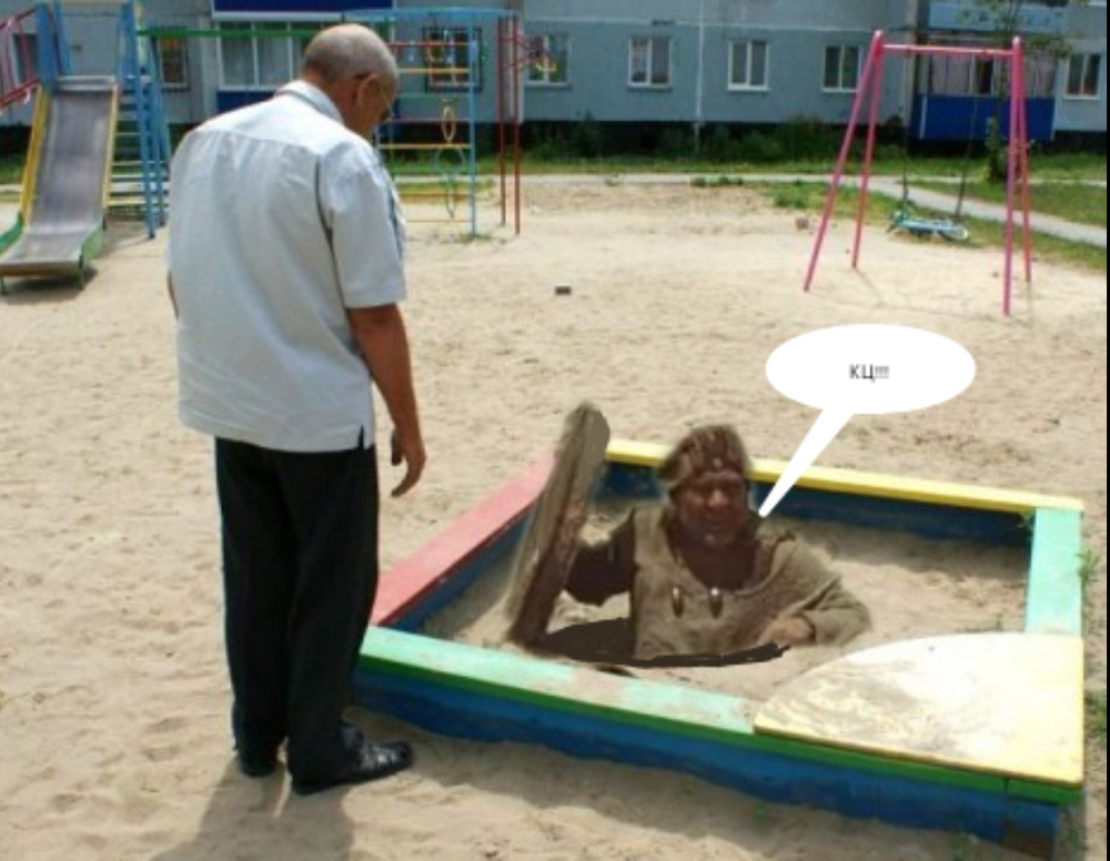 "Перетащим детскую песочницу на приоткрытый люк, накидаем песочку и сфоткаем - пусть все видят какая рашка-говняшка. Гы гы гы."