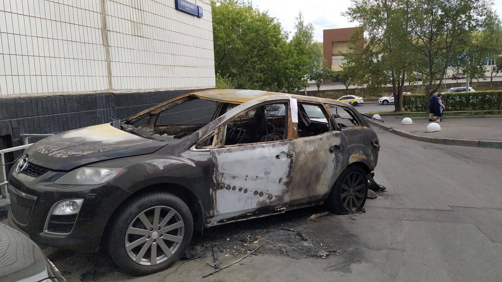 Перед моей машиной, другая машина сгорела-подожгли. Сгорел только салон. Шины, двигатель, фары не пострадали. Успели потушить.
