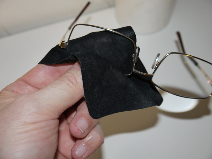 Можете не сомневаться, такой метод никогда не поцарапает ваши очки, линзы вашей фототехники или экран вашего планшета-телефона-ноутбука. Но то, с какой лёгкостью, и без особого труда, вы уберёте назойливые отпечатки пальцев -- вас очень сильно удивит!!! Главный недостаток метода -- большая вероятность испачкать пальцы сажей, поэтому (если вас это сильно заботит) то можете перед началом надеть виниловые или полиэтиленовые косметические перчатки. После всего отмоете тарелку и выбросите перчатки.