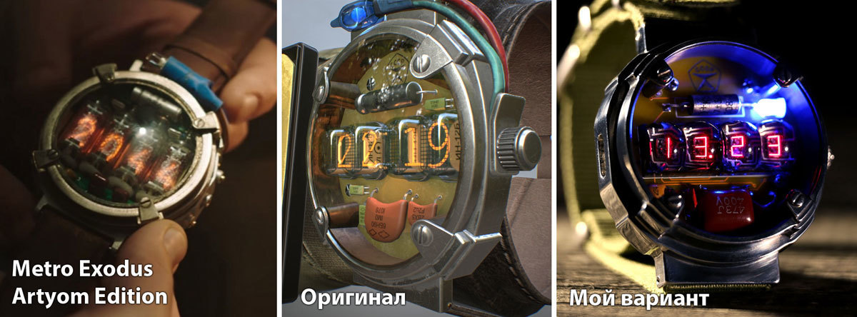 Я ни в коем разе не умаляю проделанную ими работу, но это не мой путь, я хочу добиться максимального сходства. Часы из игры выглядят вот так: