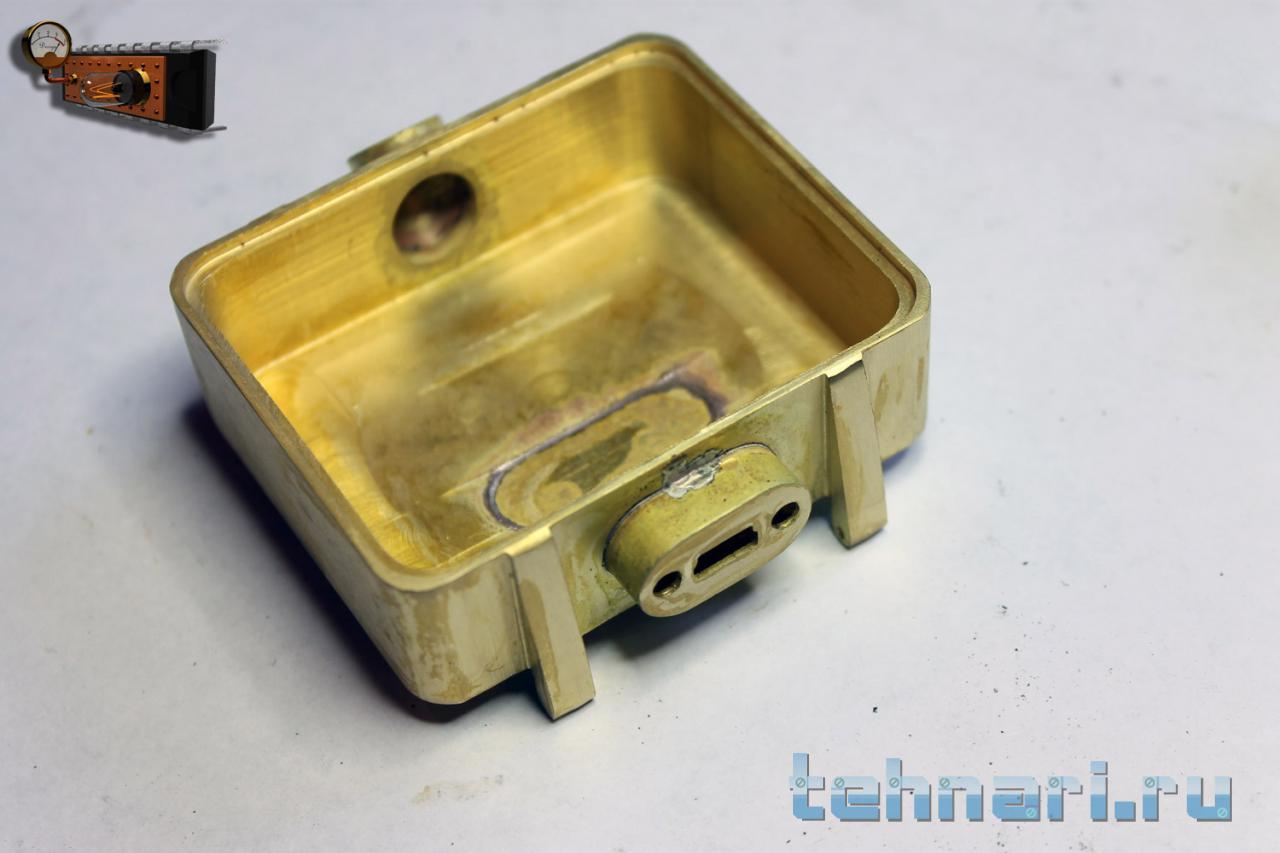 Начал я с корпуса. Не долго думая я сделал его из целой болванки, это позволило получить абсолютно параллельные стенки корпуса. Выступающие элементы были припаяны серебряным припоем.