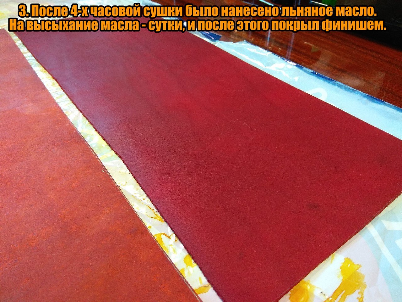 1. Для покраски была выбрана Pro Oil Dye от Fiebing's. В описании к ней так и написано, что была разработана специально для кож растительного дубления. То, что надо!