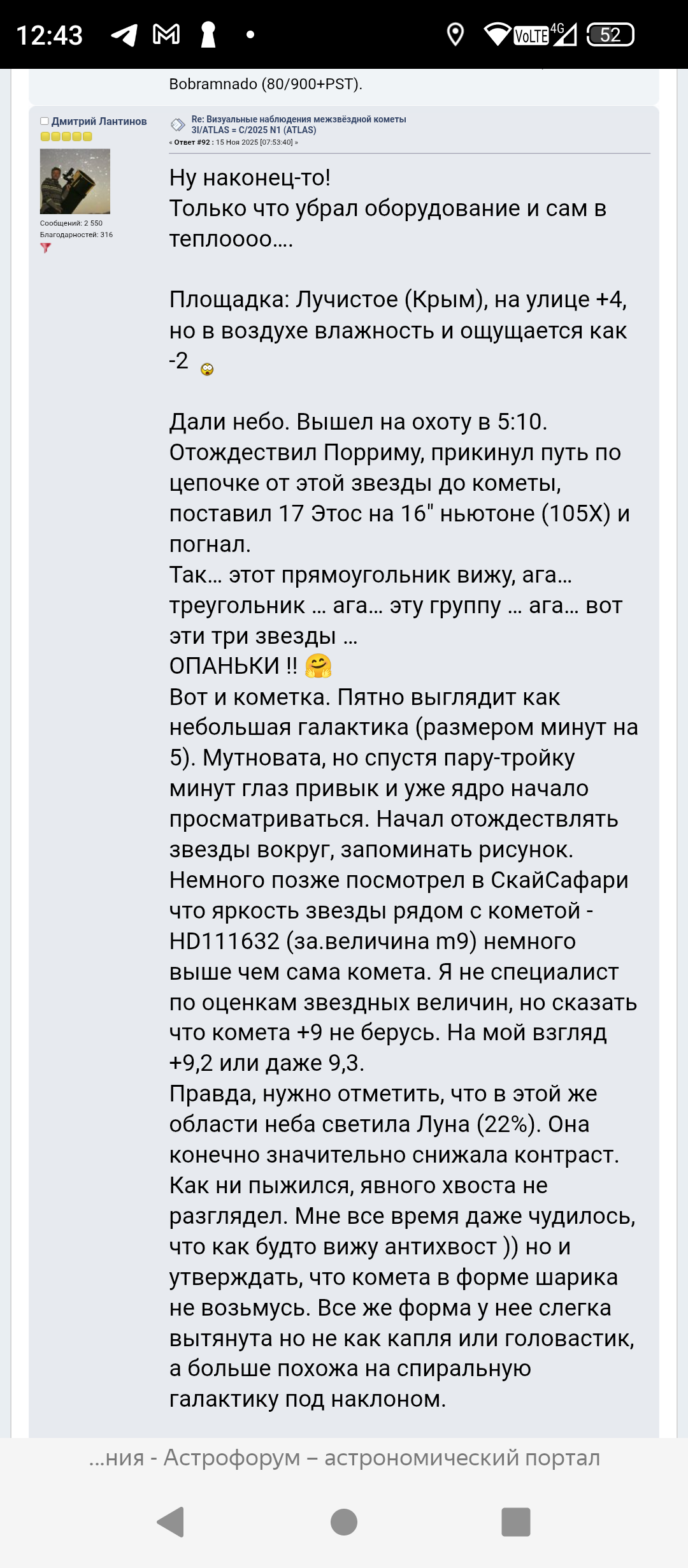 Не получилось даже научно-популярной лекции о кометах в общем и Атласе в частности. Много воды, каких то неинформативных рассуждений, хвастовства крутыми телескопами. Которые почему то, на практике, "не могут делать качественные снимки быстрых объектов на слишком большом расстоянии"