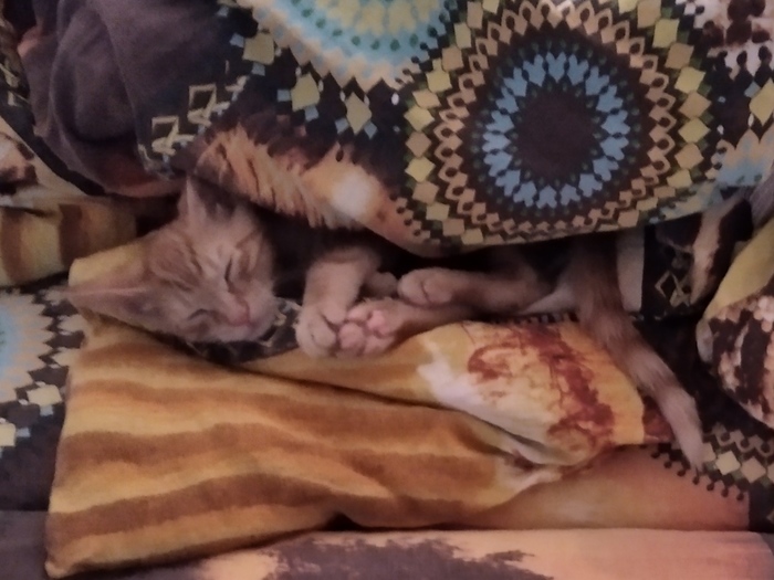 Подкинули котенка в подъезд.