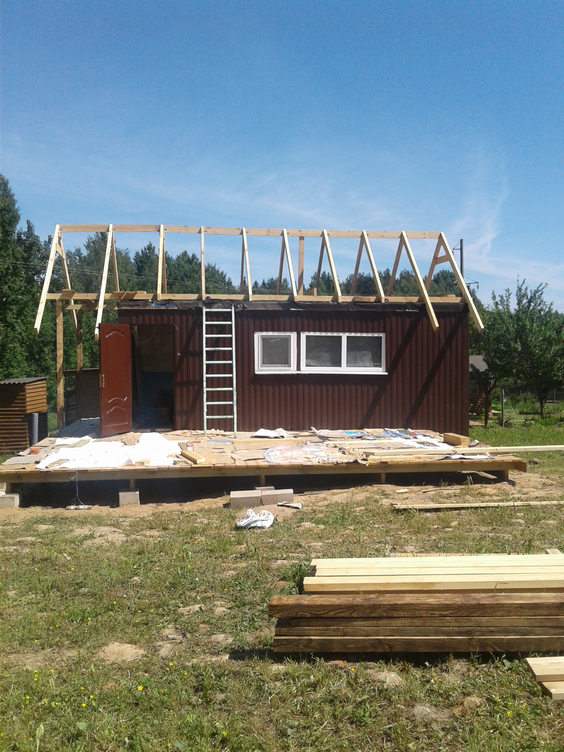 Далее мы поставили бытовку на ее постоянное место, разобрали. Из металла сделали хозблок.