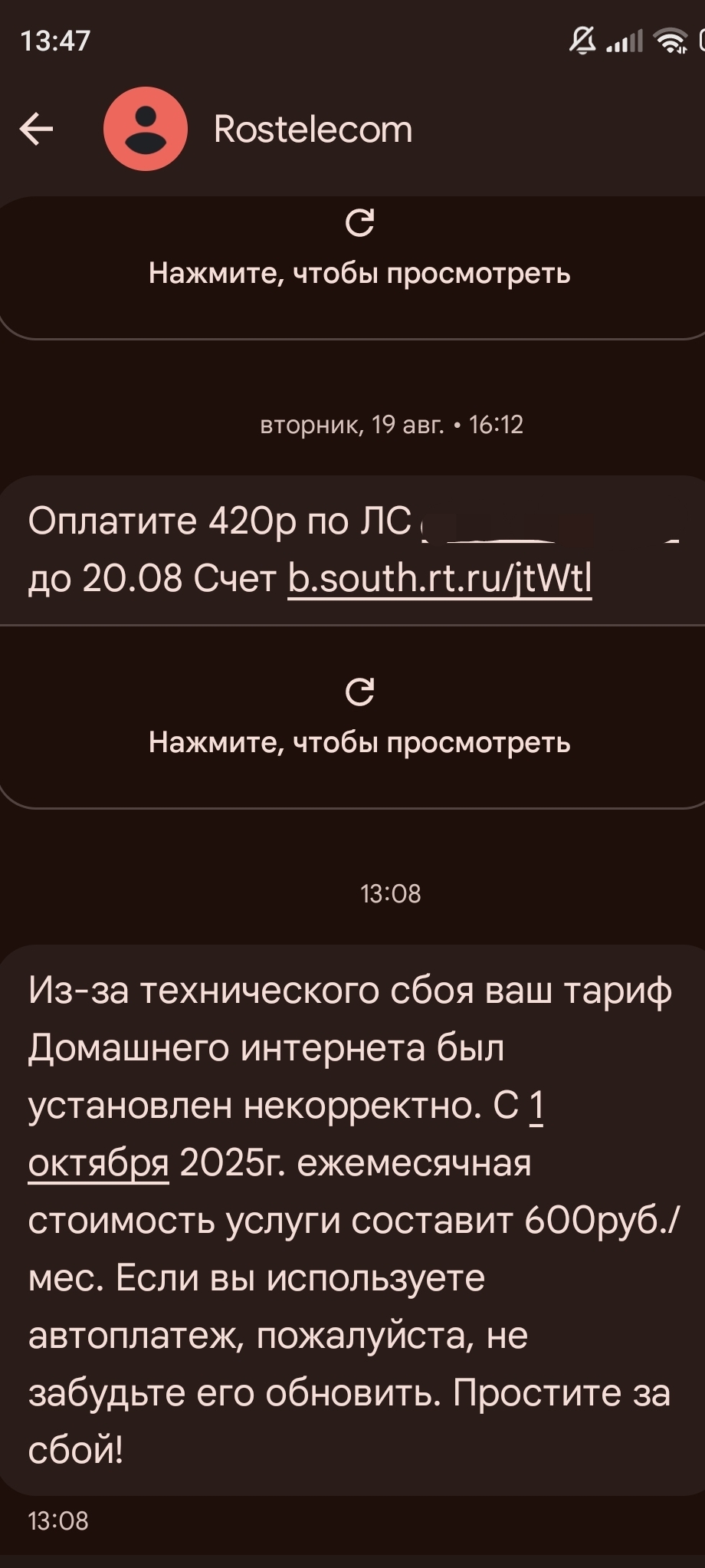Дом(с)РУ так же ежегодно уже лет 6-7 делает, плачу за 100мб (ну больше уже нет смысла) - 600р (начиналось со 130), и сразу за 12 месяцев, и каждый год в апреле они стабильно повышают цену на 10-15%, а у меня авансом уплачено с сентября по сентябрь и каждый (сука) раз мне надо писать заявление, что я оплатил авансом и они обязаны по старой цене предоставлять мне услугу...
