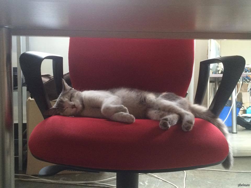 17 Yamamao Наш новый сотрудник)) 10 лет назад пришел на работу, а он спит на моем месте)) Кот Работа Животные Сон
