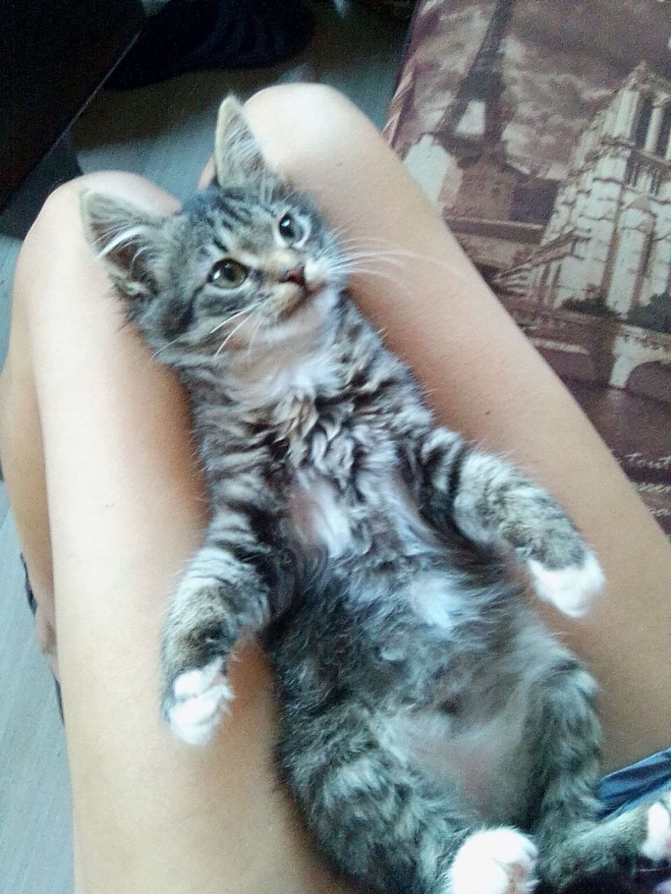 Подбросили в августе. Дверь открыл сын и оно зашло. У нас 8 котов, которых итак нечем кормить, а оно вошло. О,ЧЕРТ! Все что я смогла сказать, когда оно вошло. Так и стал он жить у нас под названием черт (чертяка, чертенок).