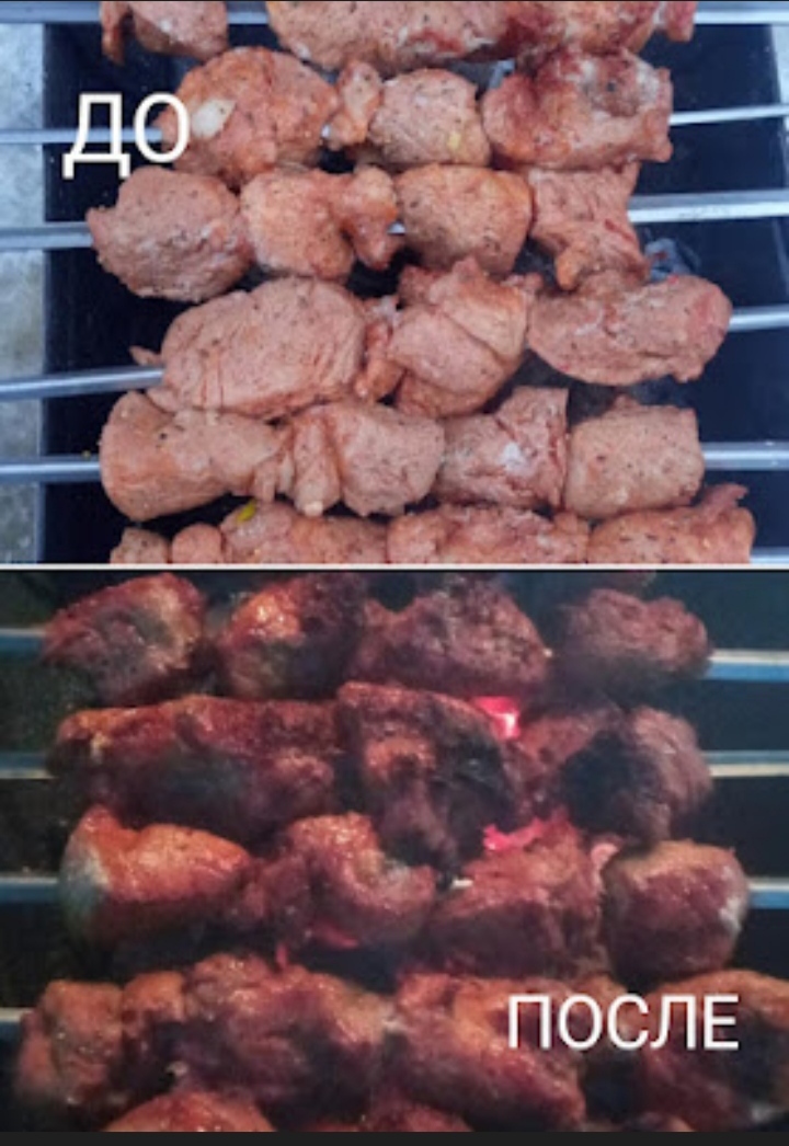 Кто праздников ждёт, тот заранее закупился, а для остальных сейчас в поте лица трудимся. Чем отличается шашлык из хорошего, деревенского мяса от промки? В первую очередь вкус. Промку, думаю все кушали, в магазине хоть раз, да брали готовый шашлык. Так вот, из домашнего мяса получается вкуснее, это да, писала, но... На второй день, если мясо осталось, оно всё такое же вкусное, сочное и нежное. Так же ему не страшна заморозка. Маринуем всегда много, как забой идёт, готовим только со свежего мяса, хоть и говорят, что должно дозреть пару недель. Но нет, делаем как нам вкусно. Упаковываем в вакуумные пакеты и излишки кладём в морозилку. Т. к. при приготовлении не используем никаких химикатов, даже кислоту не добавляем, то шашлычОк получается очень нежным, вкусным, ароматным, сохраняет свой натуральный вкус и текстуру.